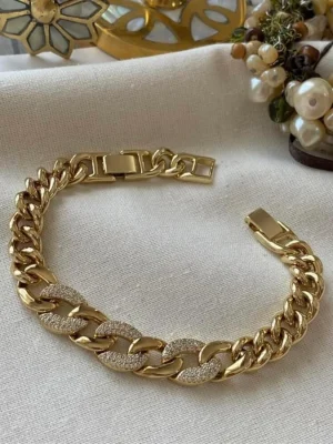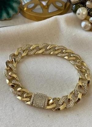 Vip 14 K Taşlı Geniş Zincir Bileklik