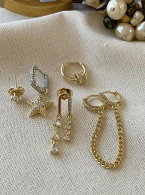 Çoklu 14K Silver Taş Detaylı Çeşitli Şekiller Küpe Seti