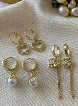 Çoklu 14K İnci Sallantılı Küpe Seti