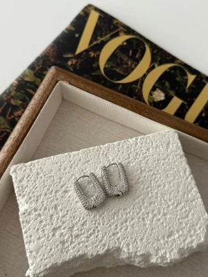 Zirkon Taşlı Silver Tone Köşeli Küpe