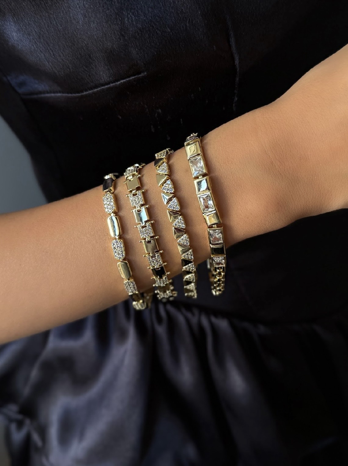 14K Altın Kaplama Zirkon Taşlı Üçgen Detay Bileklik