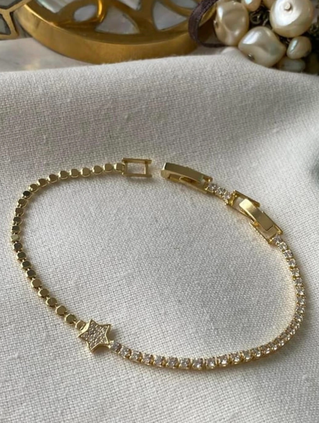 14K Çift Model Zincir Yıldız Detaylı Bileklik