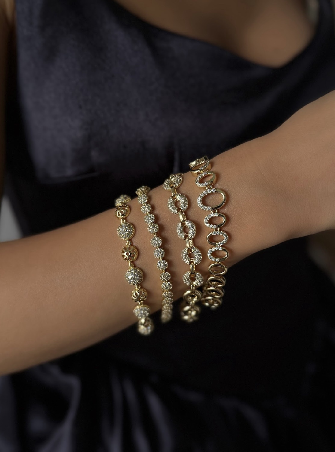 14K Vip Seri Top Taşlı Ve Çiçek Plaka Model Bileklik