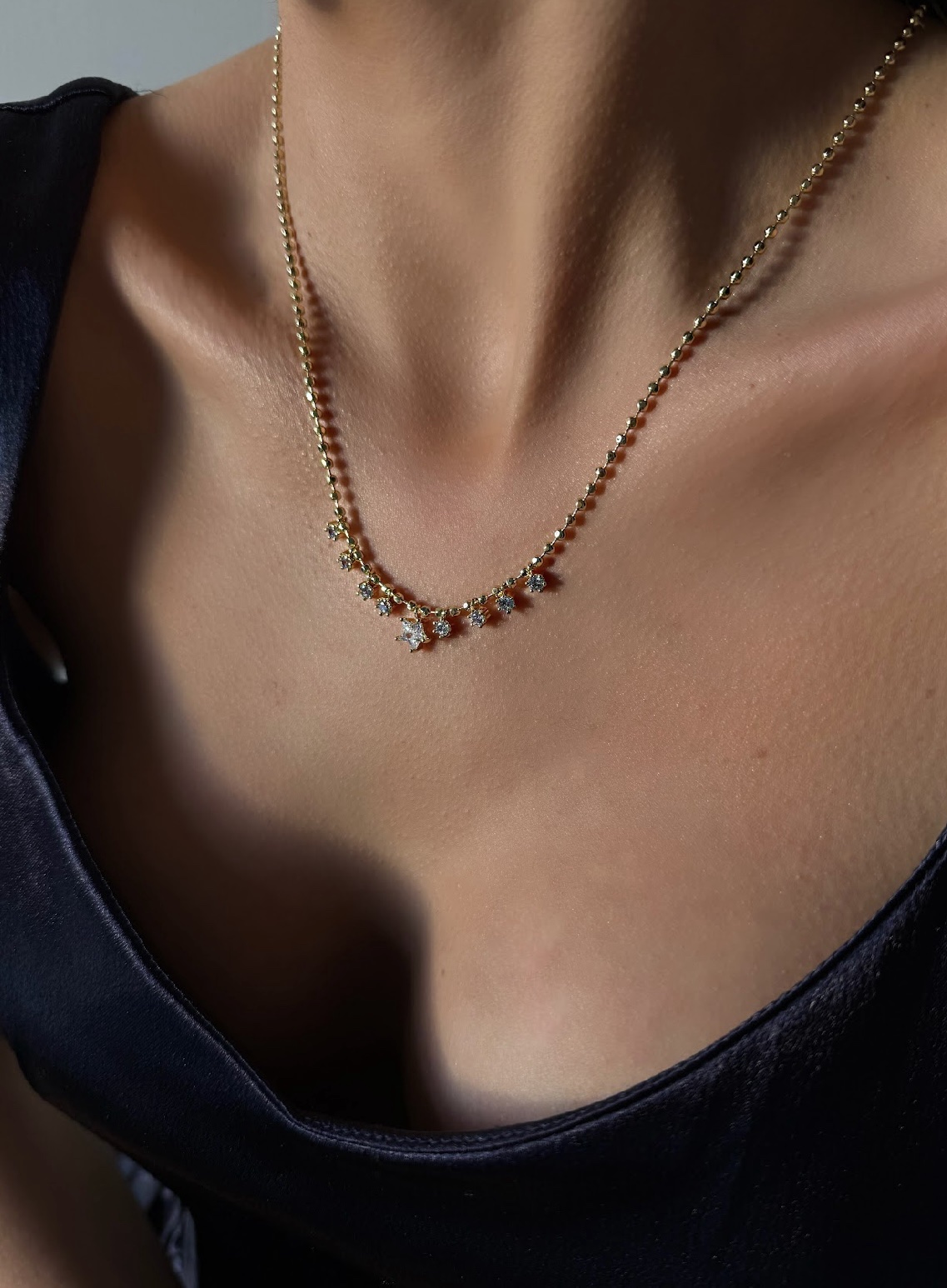 14K Yıldız Detaylı Zarif Kolye