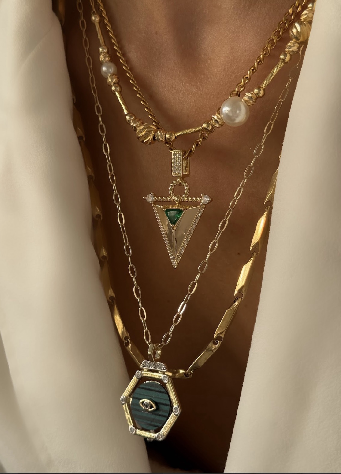Altıgen Figürlü Göz Detay Renkli Kolye