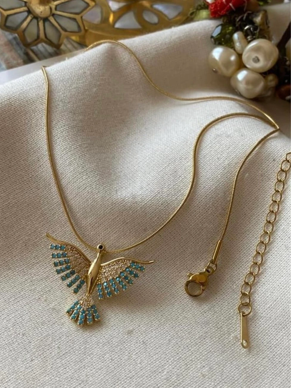 Çelik Mavi Taşlı Kuş Charmlı Kolye