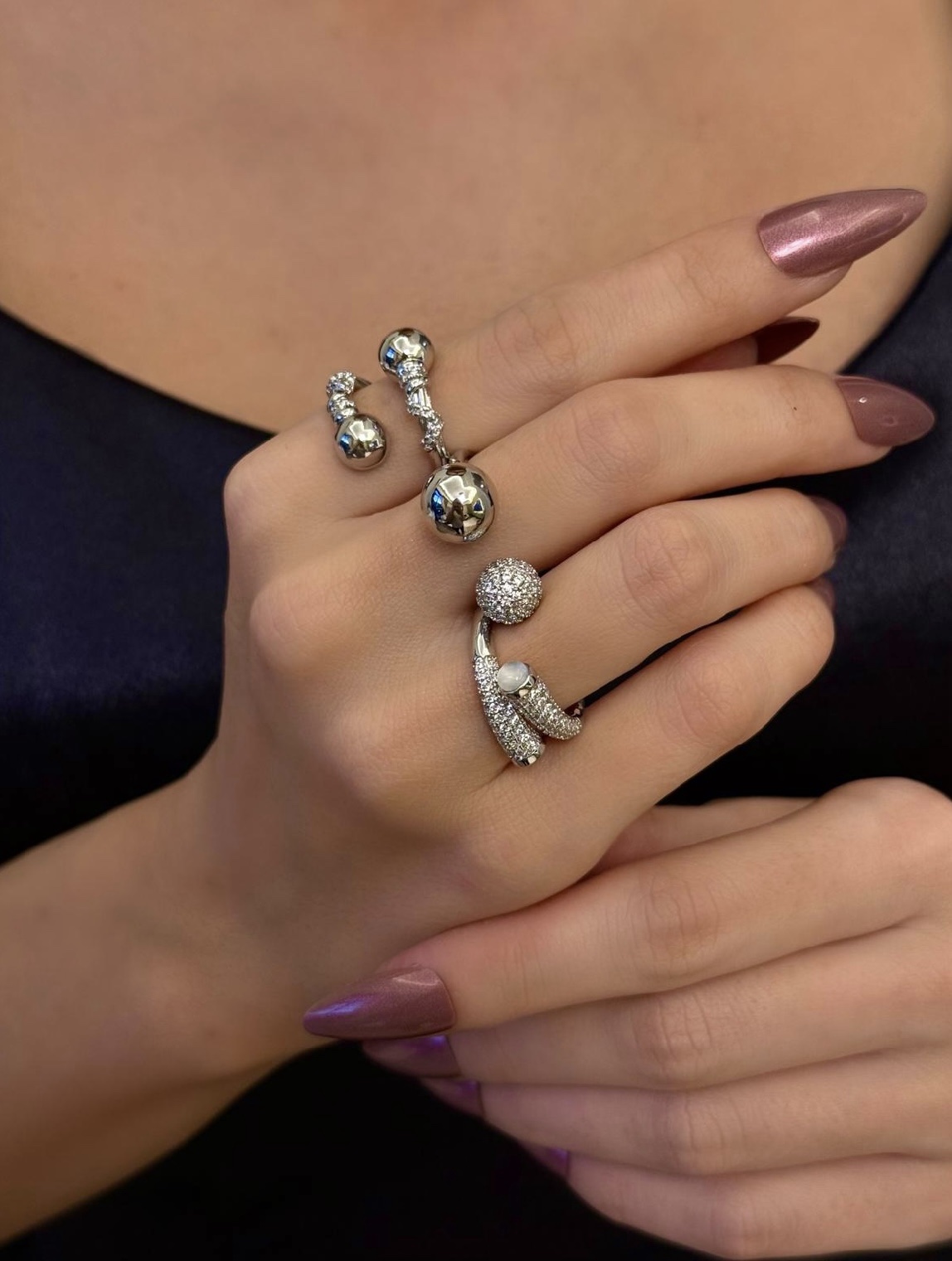 İki Top Sarmal Taş Detaylı Ayarlanabilir Yüzük