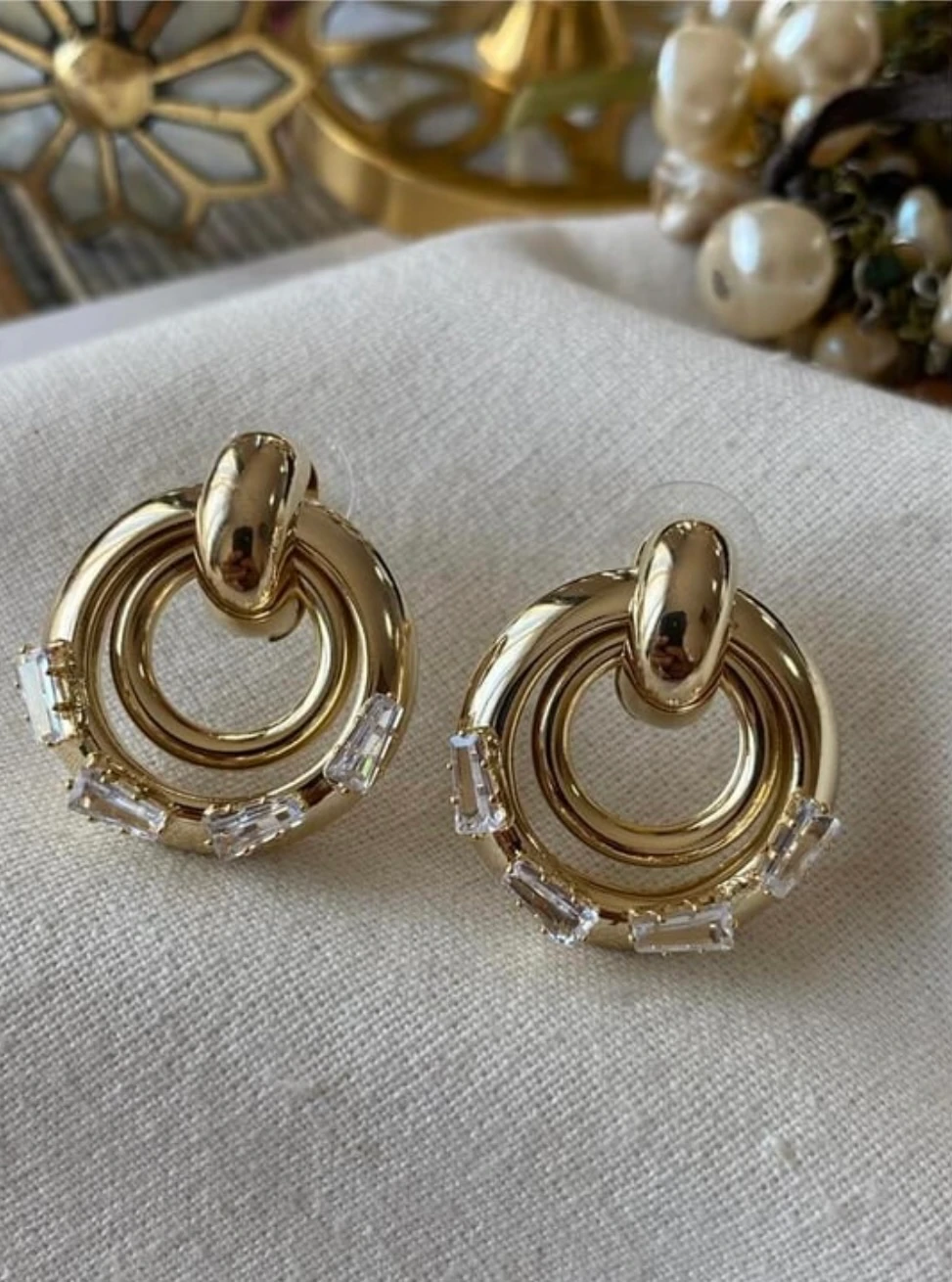 Özel Seri 14K Kesme Taş Detaylı İç İçe Halka Küpe