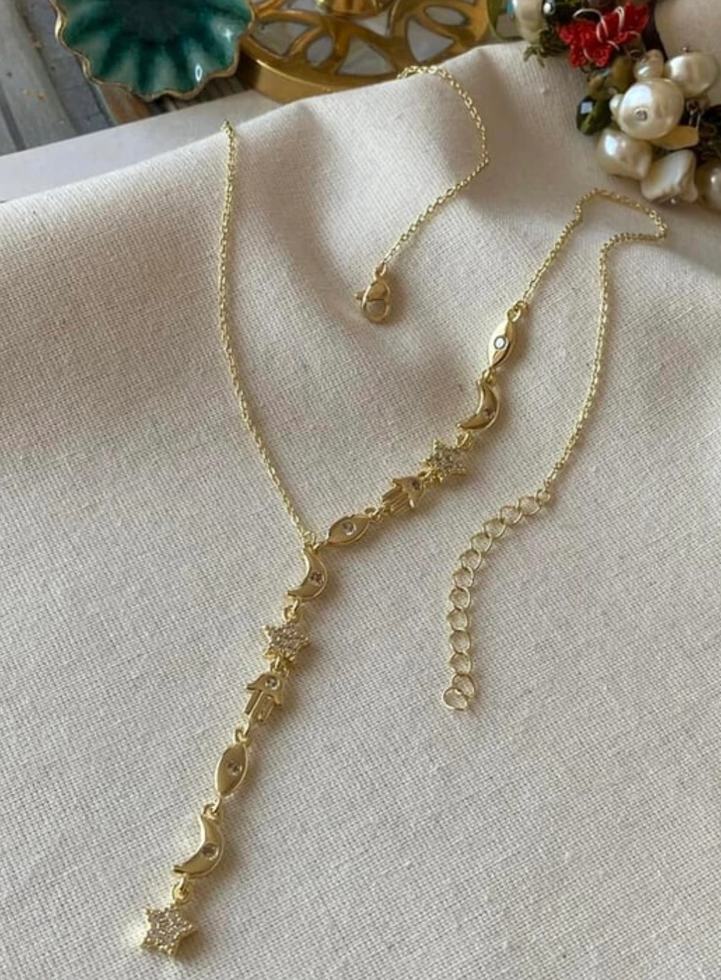 Özel Seri 14K Semboller Detaylı Y Model Kolye