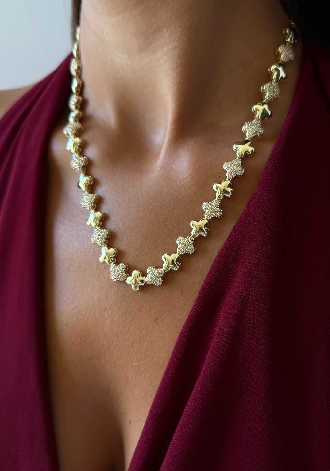 Özel Seri Taşlı Yonca Detaylı Kolye