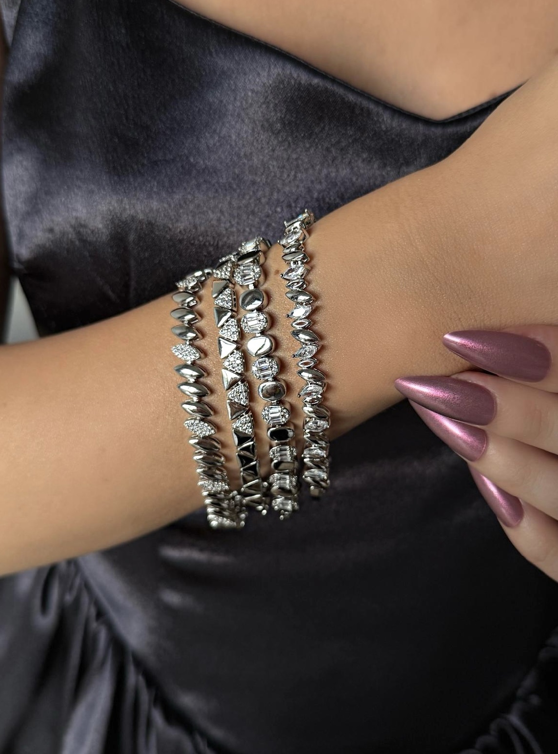 Silver Tone Büyük Sivri Taşlı Bileklik