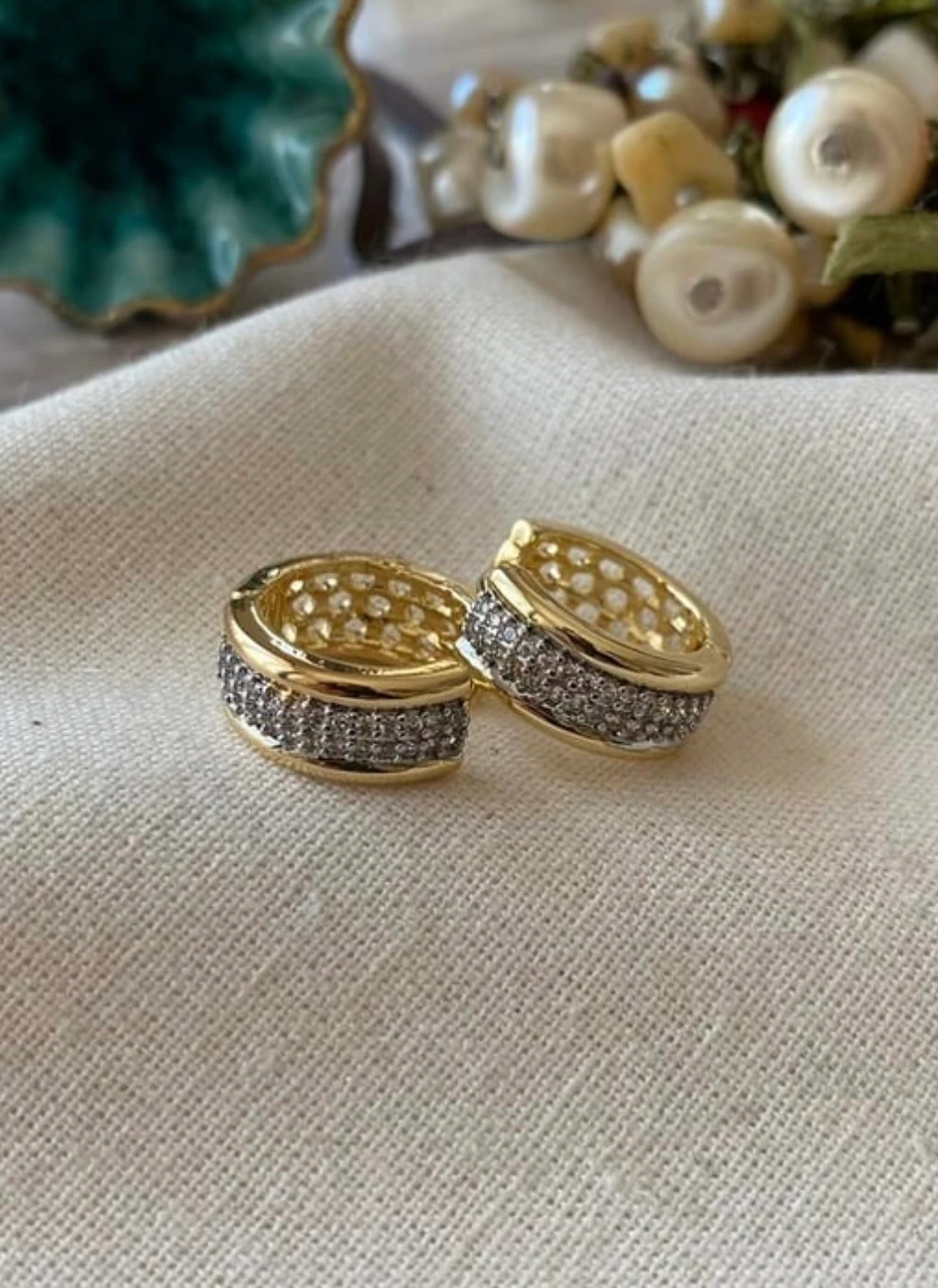 Taşlı Mit Kalın Halka Küpe