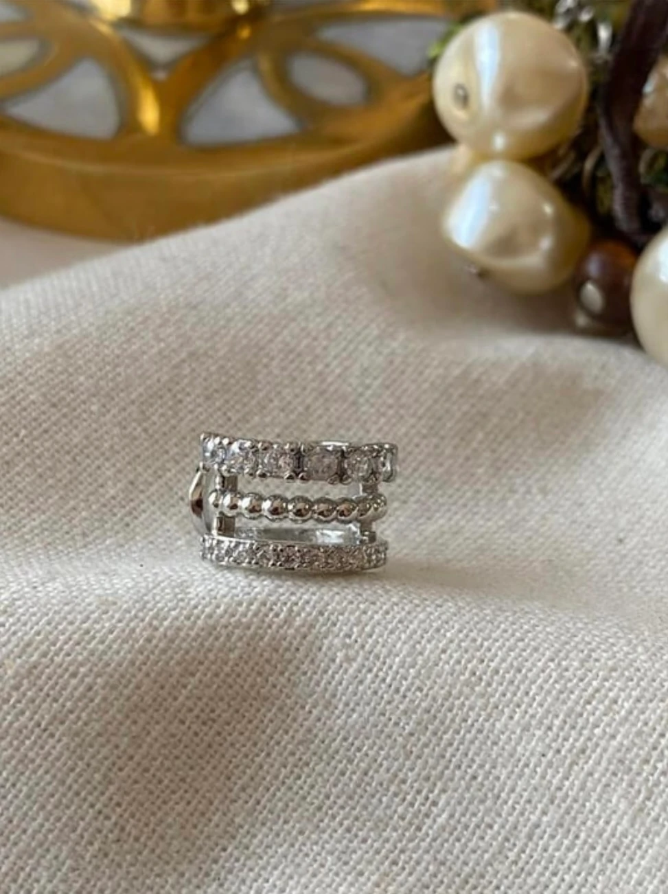 Üç Sıralı Taşlı Kıkırdak Küpe