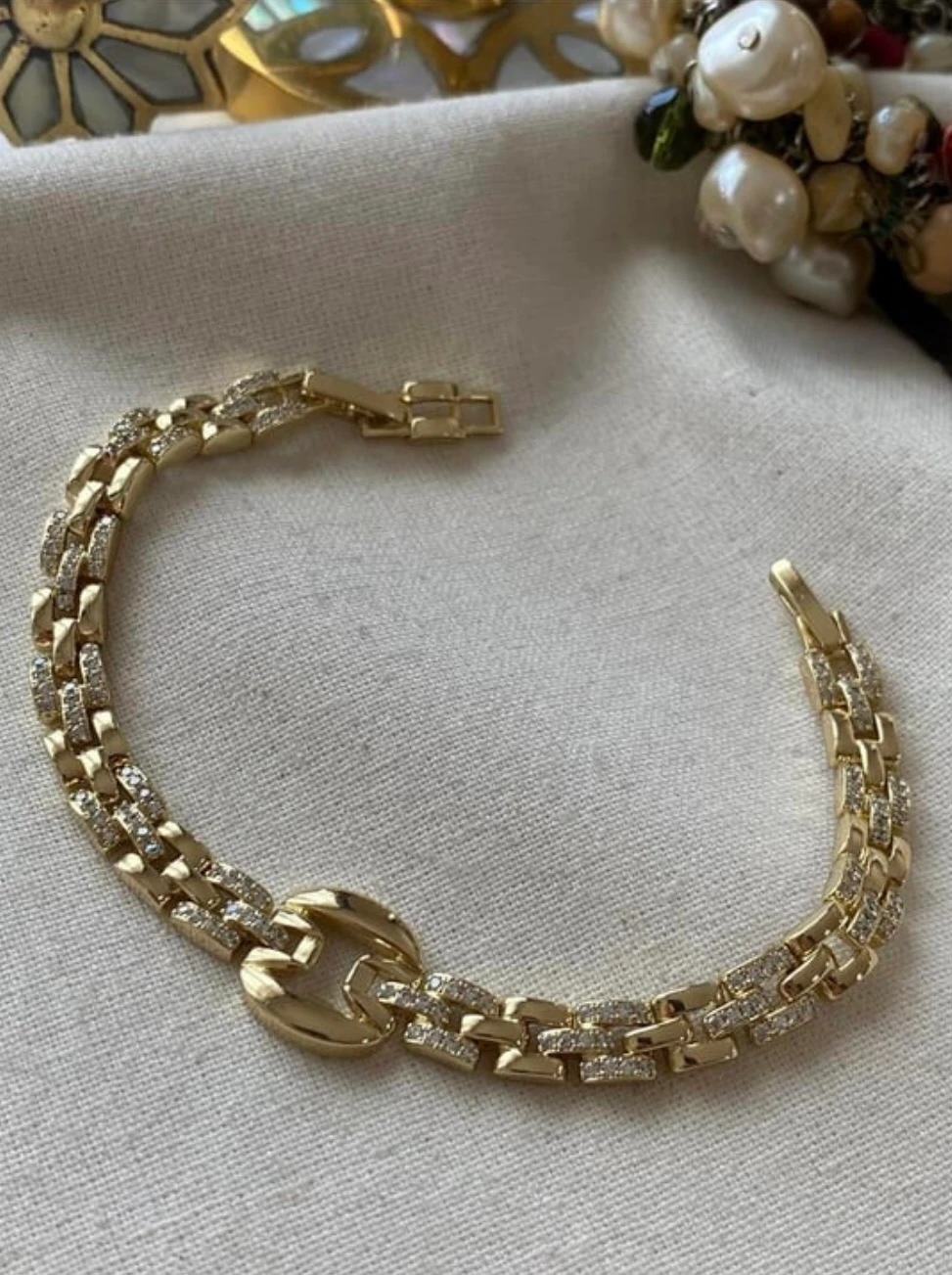 Vip 14 K Plaka Detaylı Taşlı Zincir Bileklik