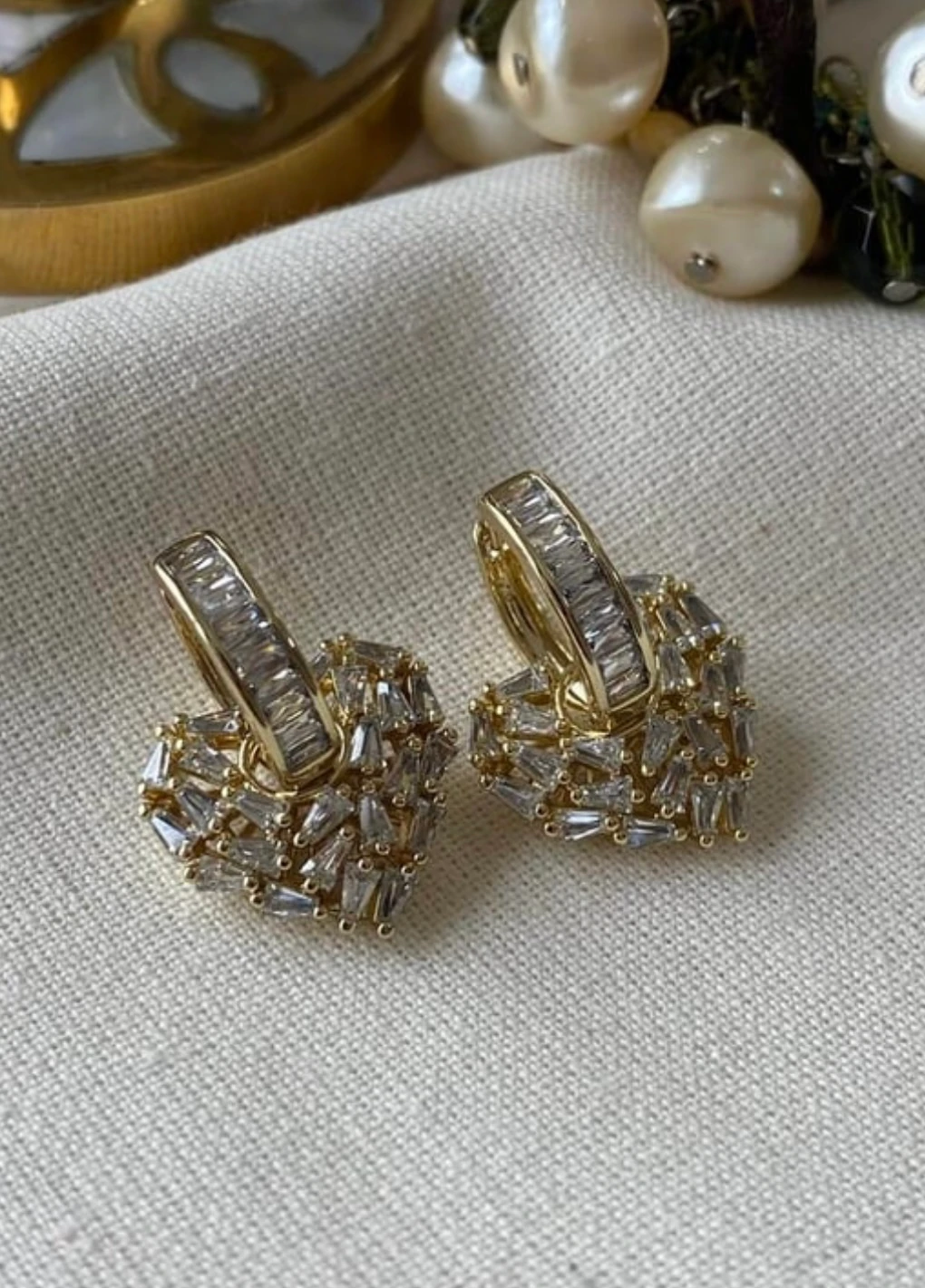 Vip 14K Kesme Taşlı Kalp Charmlı Küpe