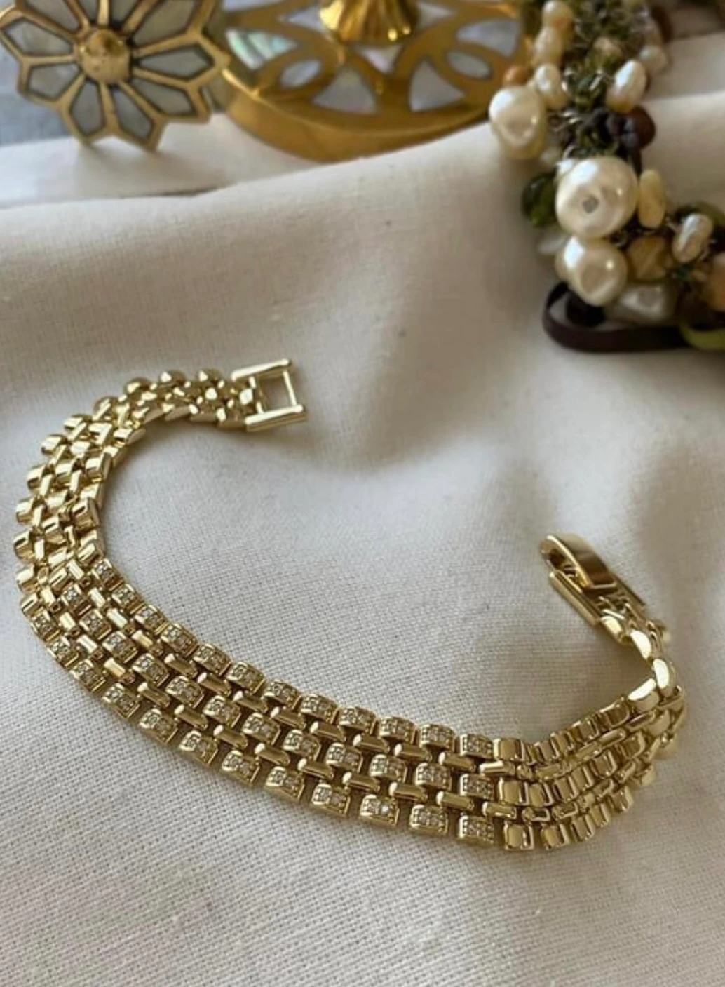 Vip 14K Taşlı Blok Örme Bileklik