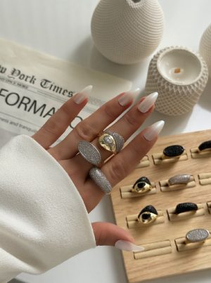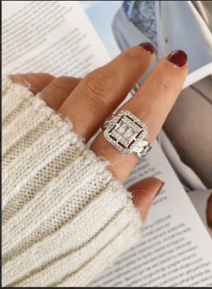 Işıltılı Baget Taşlı Vip Ayarlanabilir Yüzük